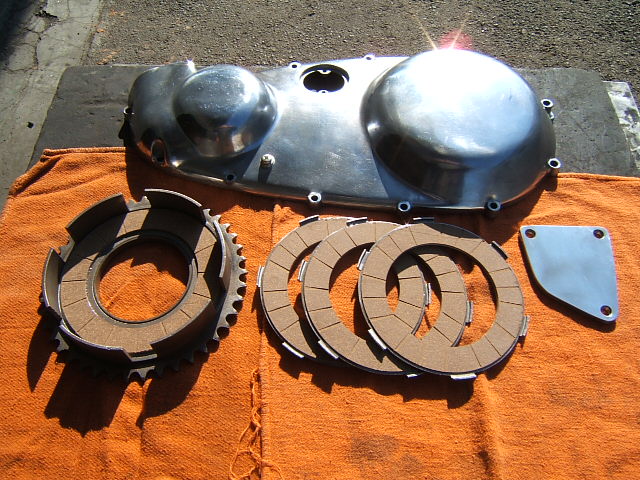 クラッチ板とハウジングは張替えに出します。(このメグロはクラッチハウジングその物が一枚分のプレートの役割を担っています)