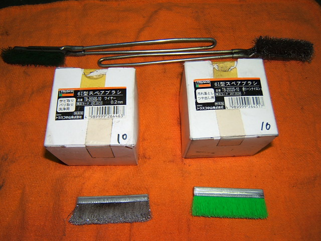 バイクや車をいじる方はけっこう持っていますよね。これ、小型のワイヤーブラシです。