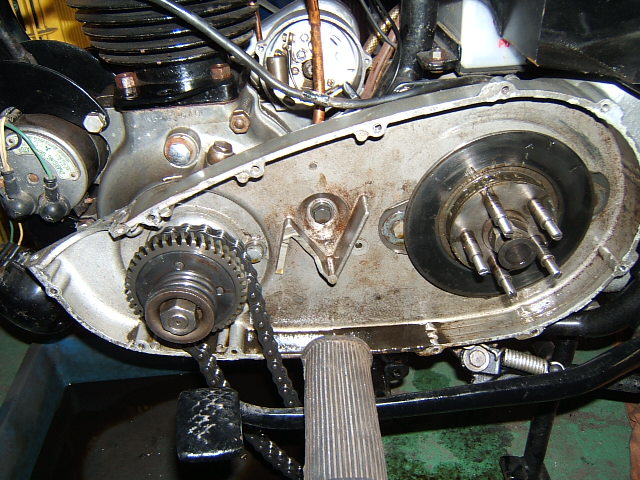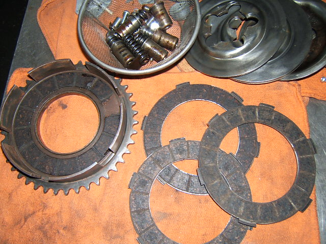 クラッチ板とハウジングは張替えに出します。(このメグロはクラッチハウジングその物が一枚分のプレートの役割を担っています)