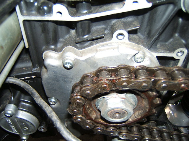 フロントスプロケットです。当時はオフセットスプロケットなんか、無かったんでしょうね?1度カットして再溶接をしています。パクリ号の方はドライブシャフトその物を交換しています。(ZR750C用)こうすれば、シャフトの交換は面倒ですが、次にスプロケットを交換するときノーマルの平面スプロケットが使えて安く上がります。