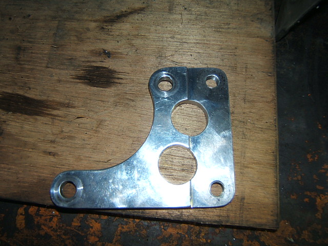 キャリパーサポート、内と外です。左画像が右サポート内側、右画像が外側です。ホークとキャリパー取り付け面共にオフセットされておりなぜかバフ仕上げです。キャリパー取り付けピッチは90mmです。同形状で作りキャリパー取り付けピッチを変えればロッキード辺りにも使えるかも?